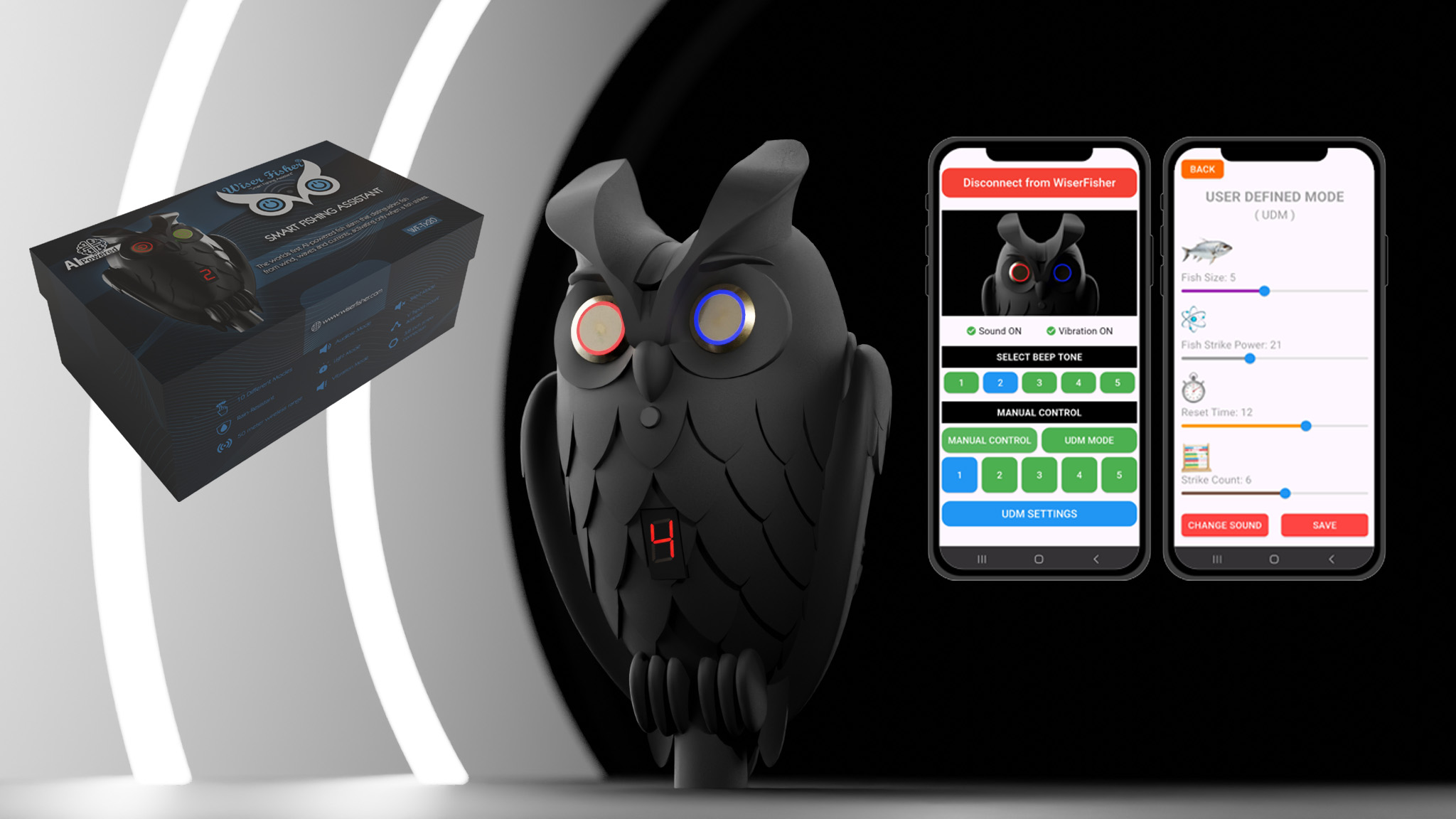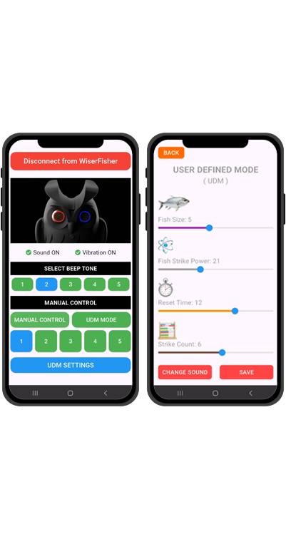 Manual Mode lets you feel every bite in real time, so you can make the call yourself. You can even switch to Silent Mode and sense every rod movement as vibration on the pocket receiver. When you want full automation, Smart Mode offers 5 sensitivity levels. Wiser Fisher makes the decision for you and alerts you with sound, light, and vibration when it confirms a true fish strike.